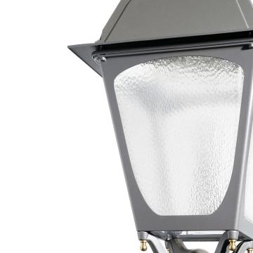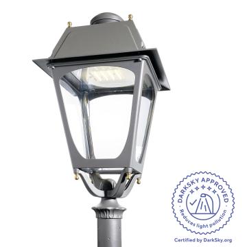 Diese elegante Straßenleuchte ist auch mit einer transparenten Abdeckung lieferbar.