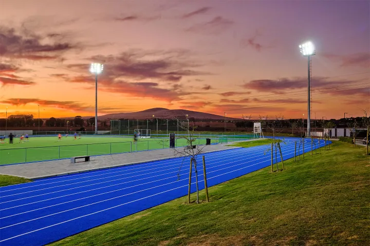 Insgesamt wurden 58 OMNIBLAST Fluter auf hohen Masten installiert. Die Fluter liefern helles weißes Licht, das für eine hervorragende einheitliche Beleuchtung der gesamten Bahn und des gesamten Hockeyfelds sorgt und den Sportler*innen jederzeit perfekte Sicht bietet. Dank der Präzisionsoptik und der Modularität der Fluter wird das Licht exakt dorthin gerichtet, wo es benötigt wird. Auf diese Weise wird Streulicht auf ein Minimum reduziert.